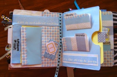 I am not sure if she will like it...she is a city girl and a cheerleader in 9th grade and totally with the "e-everything gadget" and not at all crafty inclined so I am not to sure she will understand the point of the journal as it relates to memories but if she doesn't want it, I will just keep it and maybe she will want it later! I will stress to her that she can put anything she wants in the pockets and tuck spots. Notes from her friends, dreams she has for her future she writes to herself, thoughts, pictures, ticket stubs, programs..fill the pockets with anything...write about anything....anything she wants! And it doesn't have to "match" the theme of the page either.